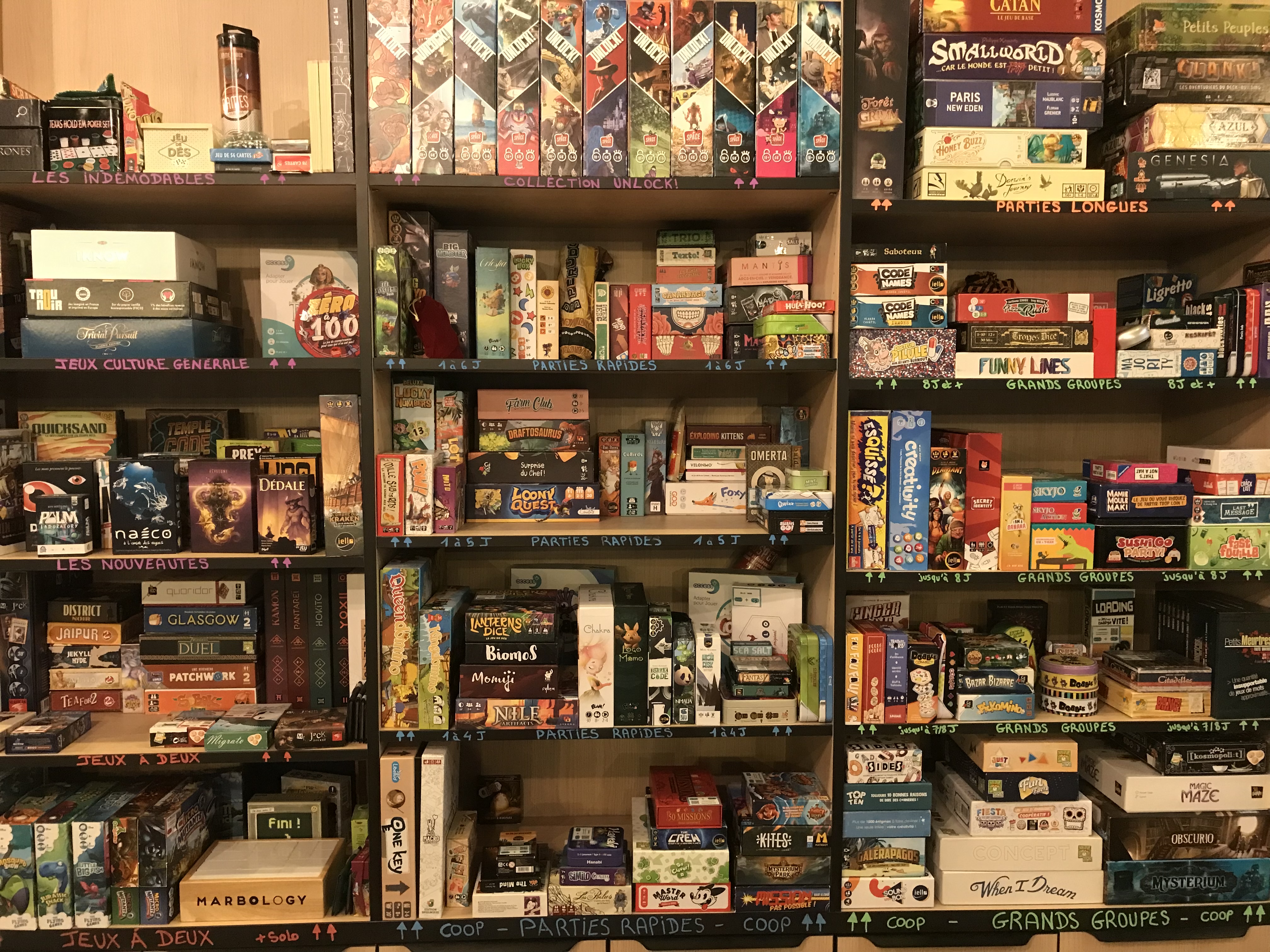 Près de 500 références rangées par catégories pour que tu t’y retrouves plus facilement : du jeu à deux, en passant par le jeu familial, au jeu court, moyen ou plus long. Là encore, il y en a pour tous les goûts !
