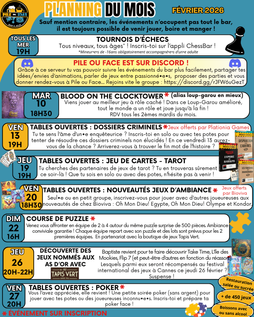 🎲Boire, manger et jouer avec ses ami•e•s, en famille ou entre inconnu•e•s dans un lieu chaleureux et convivial, c’est chez 🎲 Pile ou Face 🎲 !
